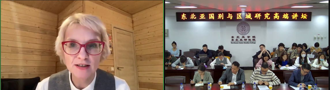 On November 8th, 2022, Professor Natalia Tsvetkova, Dean of American Studies Department, School of International Relations at St Petersburg University, Russia, delivered an online academic report on the theme of the Triangular Relationship between China, the United States and Russia under New Circumstances”, at the invitation of the Northeast Asian Research Center of Jilin University and the Northeast Asian Studies College of Jilin University. The report attracted faculty and students from Northeast Asian Studies College, School of Public Administration, and School of Foreign Studies at Jilin University