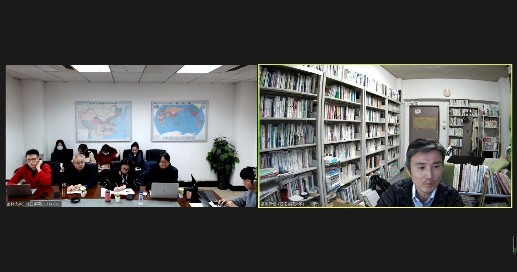 On December 3rd, 2021, Professor FUJIKAWA SHOGO of the Faculty of Commerce of Seinan Gakuin University, Japan, delivered an online lecture on "Competitiveness of Japanese-type Production System and its Limitations" at the invitation of the Northeast Asian Research Center of Jilin University, the Northeast Asian Studies College of Jilin University, the Institute of Northeast Asian Studies, and the Institute of Japanese Studies of Jilin University. The lecture was held simultaneously both as an online lecture and in person. Associate Professor Li Hongmei, deputy director of the Institute of World Economics, Northeast Asian Studies College of Jilin University, was the moderator and on-site interpreter. The lecture was attended by some faculty members, postgraduate students and Ph.D. students from the Northeast Asian Studies College of Jilin University.