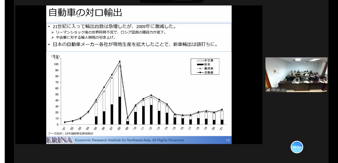 On November 10th, 2022, a high-end lecture on "30 Years of History of Japan-Russia Economic Relations" of the High-End Symposium on Northeast Asia International and Regional Studies was successfully held at Jilin University. The lecture was jointly organized by the Northeast Asian Research Center of Jilin University, the Northeast Asian Studies College of Jilin University, and the Special Committee for Northeast Asian Regional Studies, Academic Association for International Cultural Exchange. The Northeast Asian Studies College of Jilin University invited Professor ARAI HIROFUMI, Director and Chief Research Fellow of the Research and Studies Department, Economic Research Institute for Northeast Asia (ERINA), to deliver the lecture. The lecture was hosted by Associate Professor Li Hongmei, Deputy Director of the Institute of World Economics, Northeast Asian Studies College of Jilin University. Associate Professor Hu Renxia, Northeast Asian Studies College of Jilin University, and postgraduate students and doctoral students majoring in World Economics and International Politics attended and enlivened the lecture. At the beginning of the lecture, Associate Professor Li Hongmei, on behalf of Prof. Wu Hao, Dean of the Northeast Asian Studies College of Jilin University, extended a warm welcome and high appreciation to Prof. ARAI HIROFUMI.