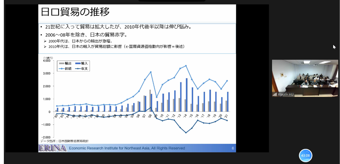 Prof. ARAI HIROFUMI first reviewed the historical events that had a significant impact on Japan-Russia economic relations, such as the Japan-Russia Treaty of Friendship, the Russo-Japanese War in the early 20th century, and the Japan-Soviet Union Joint Declaration, as well as the history of Japan-Russia economic development before the establishment of the Russian Federation. He then focused on the economic development of the Russian Federation in the 30 years since its establishment and its economic relations with Japan, specifically Japan's dependence on Russia for energy and the need for deeper economic cooperation between Japan and the Russian Far East, but the Russian-Ukrainian conflict has cast a shadow over Japan-Russia economic cooperation. Professor Arai presented an insightful presentation.