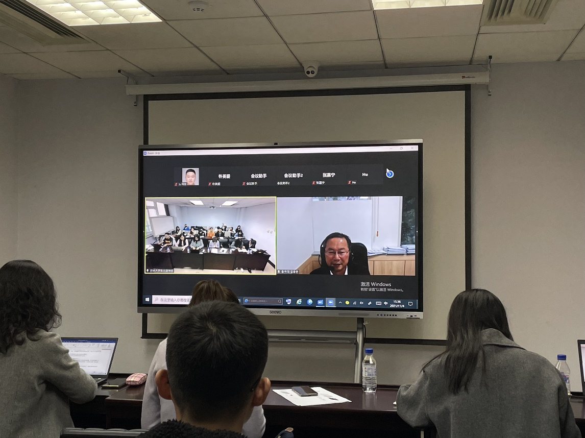 On November 4th, 2021, Professor Kim Young-hyun of the North Korean Studies of Dongguk University in South Korea gave an online academic report with the theme of The Situation on the Korean Peninsula and The Peace Process at the invitation of the Northeast Asian Research Center and Northeast Asian Studies College of Jilin University. The academic report was chaired by Professor Zhang Huizhi, Deputy Director of the Northeast Asian Research Center and Director of the Institute of Korean Peninsular Studies, with Professor Jin Xiangdan as the interpreter, and the research team on the Korean Peninsula and graduate students from related majors participated in the event online or offline.