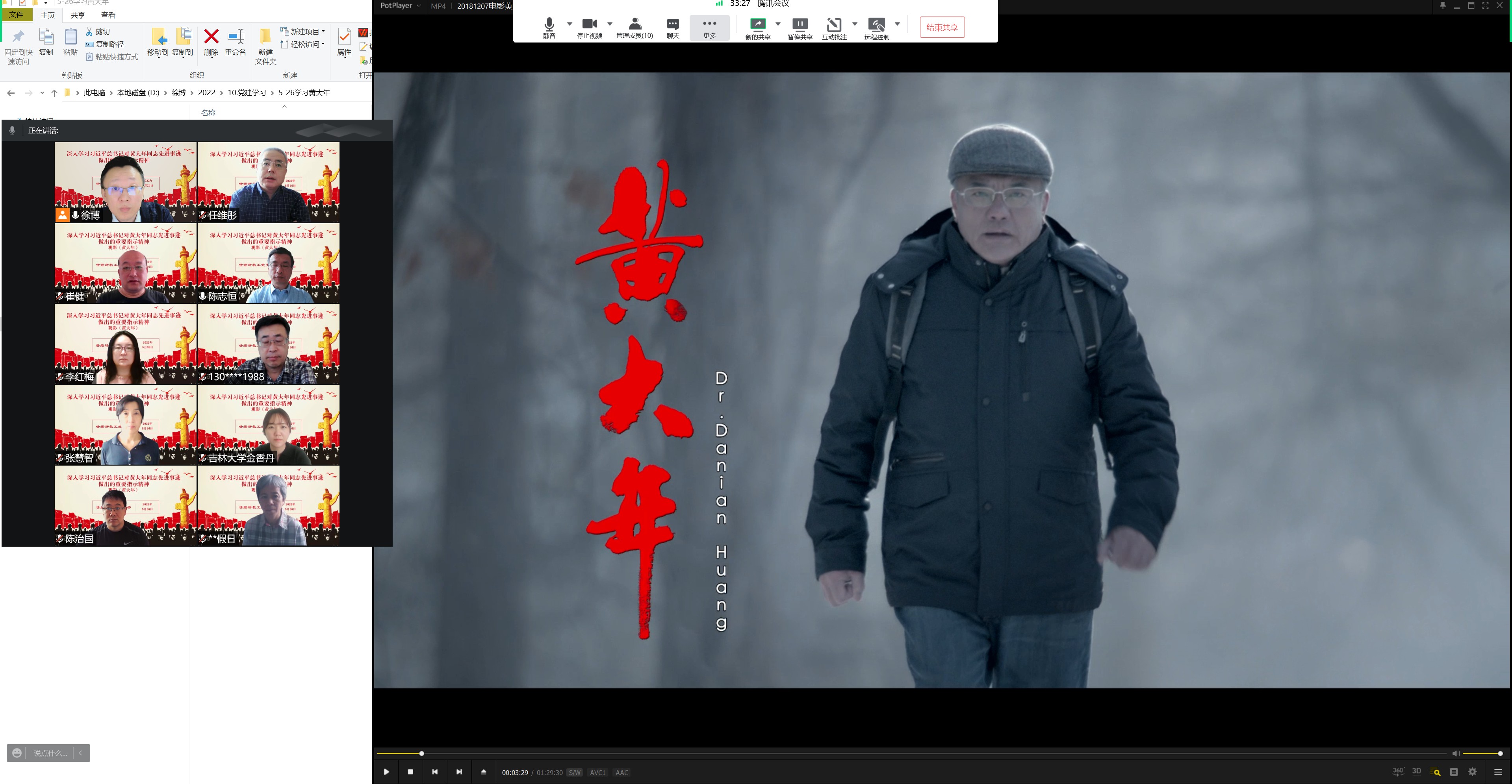 生动的影片和深刻的文字带领师生们重温了地球物理学家黄大年同志满怀爱国热情、不计得失、只争朝夕、顽强攻关的感人故事,带领党员们深刻领会了黄大年同志“心有大我、至诚报国,教书育人、敢为人先,淡泊名利、甘于奉献”的宝贵精神。人无精神不立,国无精神不兴。黄大年精神是新时代带有吉大烙印的强大精神,是每一位吉大人在学习、工作和生活中宝贵文化传承。