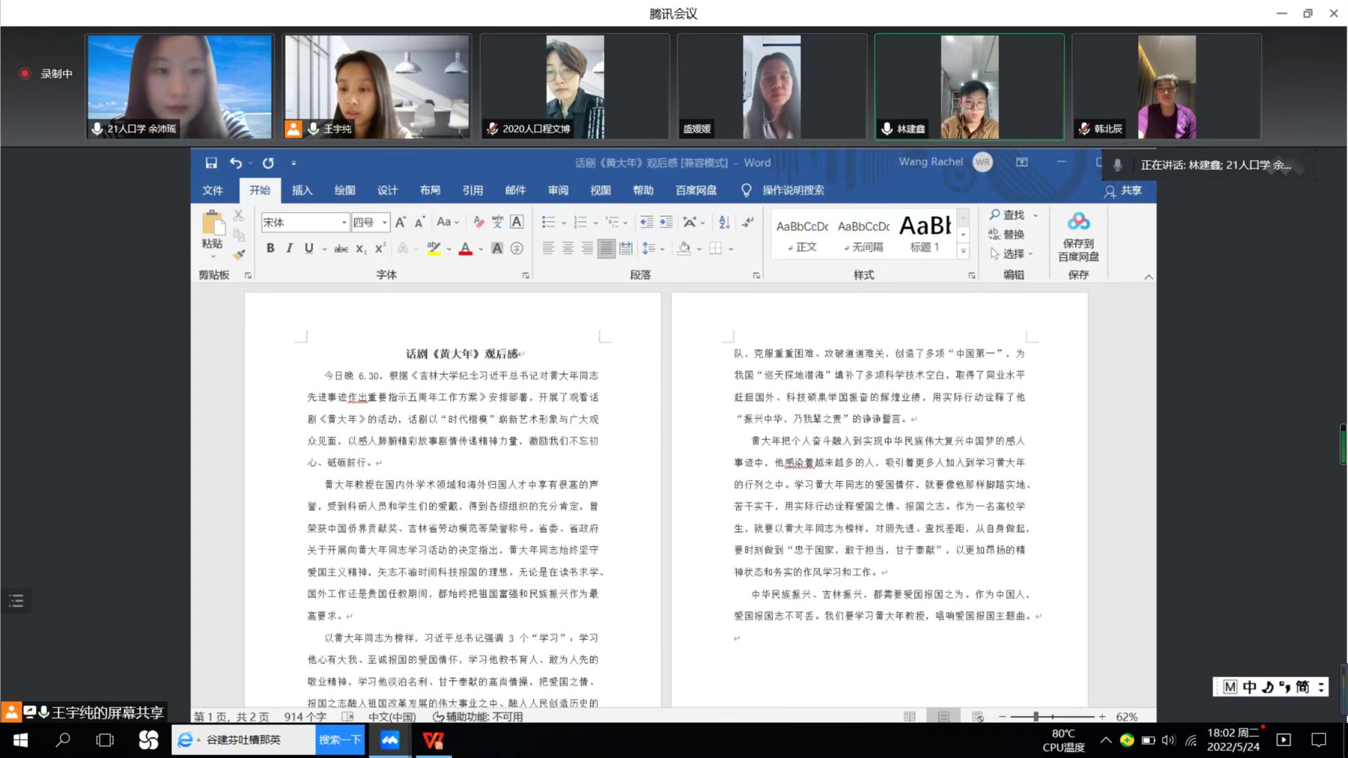 全体党员师生以参加支部主题党日活动的形式,在线上观看了电影《黄大年》、话剧《黄大年》、纪录片《赓续传承兴伟业 砥砺前行铸辉煌》,认真学习了姜治莹书记在人民日报发表的《心有大我 至诚报国》及张希校长在光明日报发表的《黄大年:从科学家到战略科学家》两篇署名文章和其他相关事迹材料。师生通过参加主题征文、撰写学习心得、录制“大年老师:我想对您说”短视频等方式深入开展学习,在学院内掀起了学习黄大年精神的热潮。