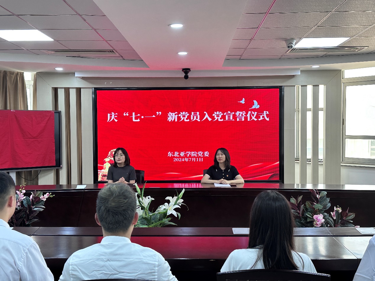 团委负责人山丹老师主持,学院党委书记赵毅博老师、2024年16名新党员参会。