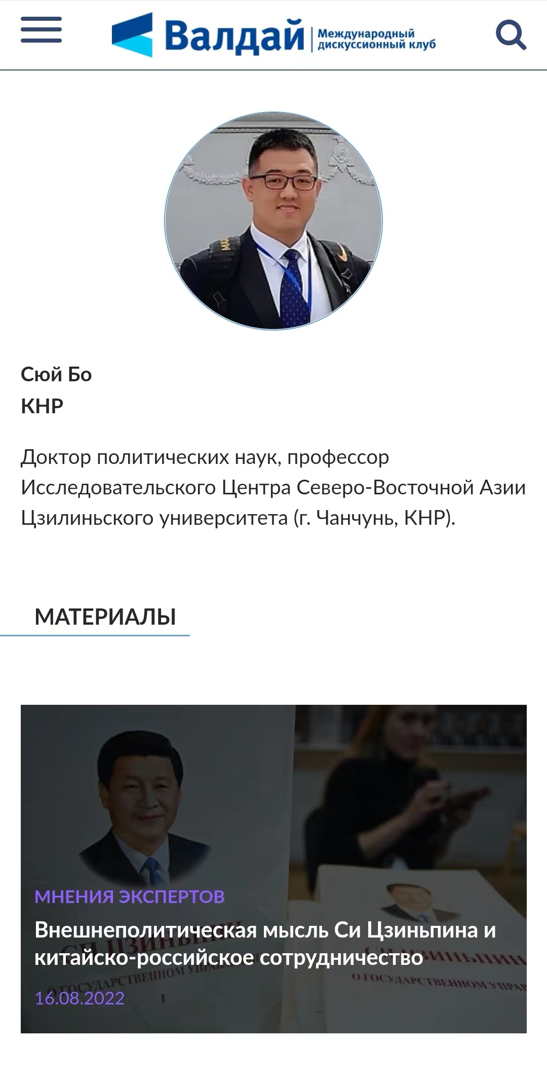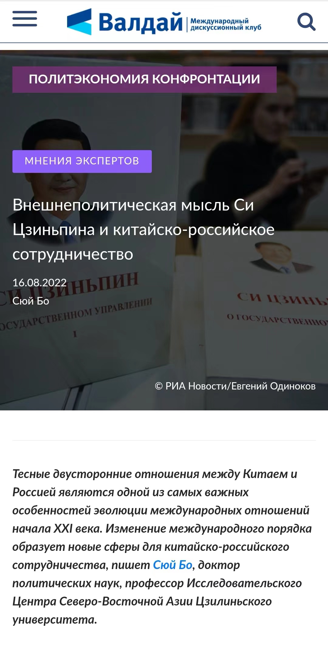 东北亚研究中心、东北亚研究院徐博教授撰写的《习近平外交思想与中俄合作》一文在俄罗斯最具国际影响力的顶级智库平台“瓦尔代俱乐部”同时以俄英两种文字发表。文章目前已经成为2022年度该智库在俄社交媒体获点击率和转载次数最高的文章之一。