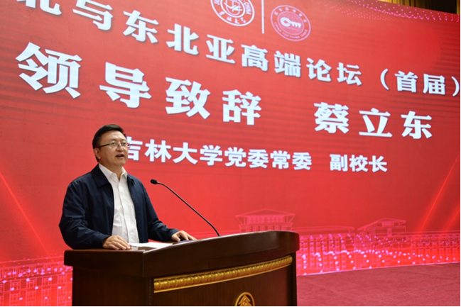 党委常委、副校长蔡立东在致辞中代表姜治莹书记、张希校长向出席论坛的各位领导和嘉宾表示热烈的欢迎和诚挚的问候。他表示,本次论坛是学校深入贯彻落实习近平总书记关于东北振兴发展与东北亚区域合作的重要讲话和重要指示批示精神,致力于打造成为高质量服务党中央决策和实施相关重大战略部署的品牌论坛,是建设聚焦东北振兴与东北亚和平发展的重大理论和重大现实问题的学术交流平台。希望大家通过本次论坛深入交流思想、分享智慧,在服务东北全面振兴与促进东北亚和平发展方面产出新的思想成果。
