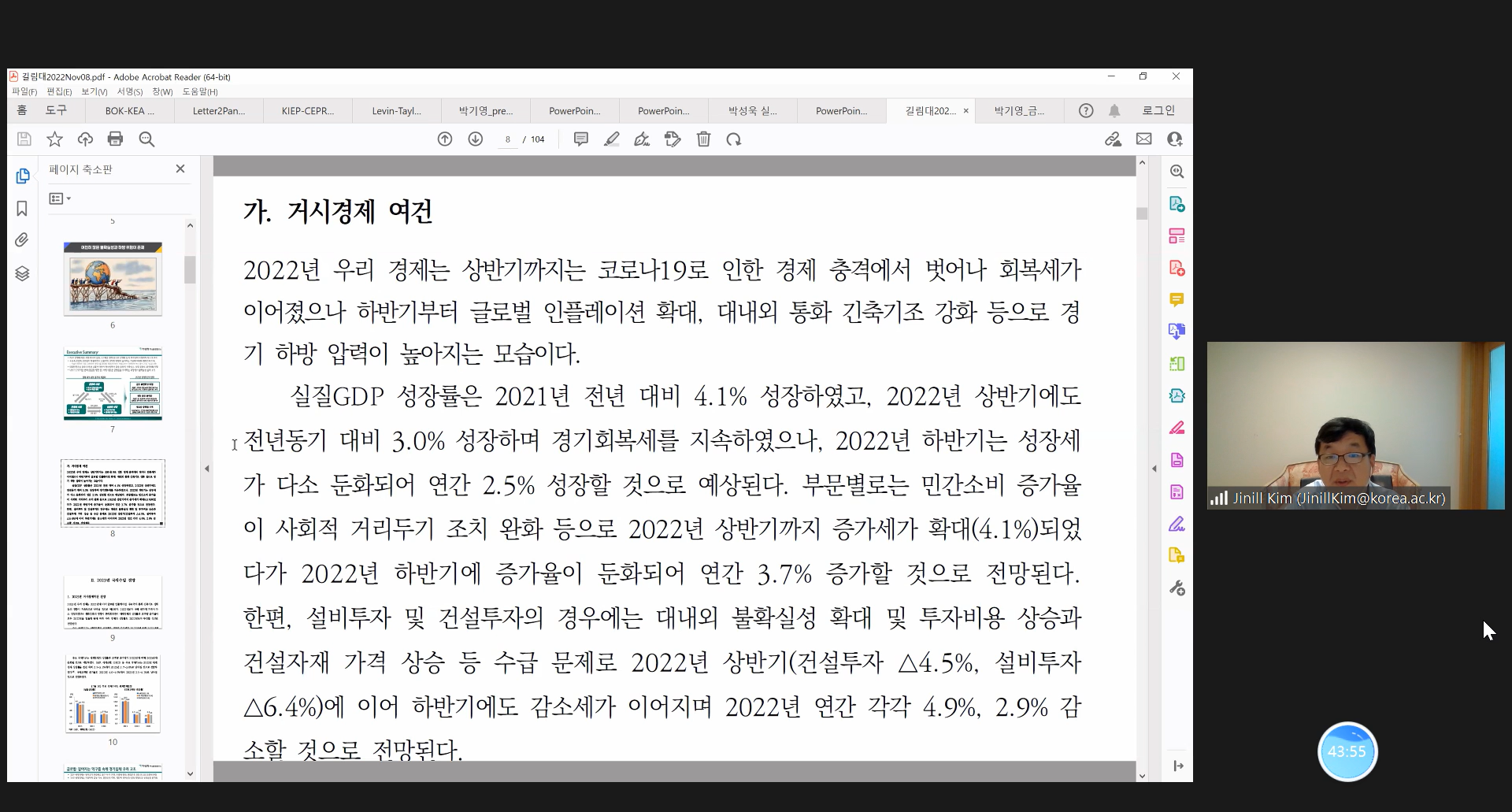 金鎭一教授现任职于韩国高丽大学政经学院,博士就读于耶鲁大学,获经济学博士学位。在加入高丽大学之前,他曾在美国联邦储备委员会担任高级经济学家。在《International Economic Review》、《Journal of Monetary Economics》、《Journal of International Economics and Economic Policy》等顶级期刊上发表多篇论文。主要研究领域为货币经济学、宏观经济学。