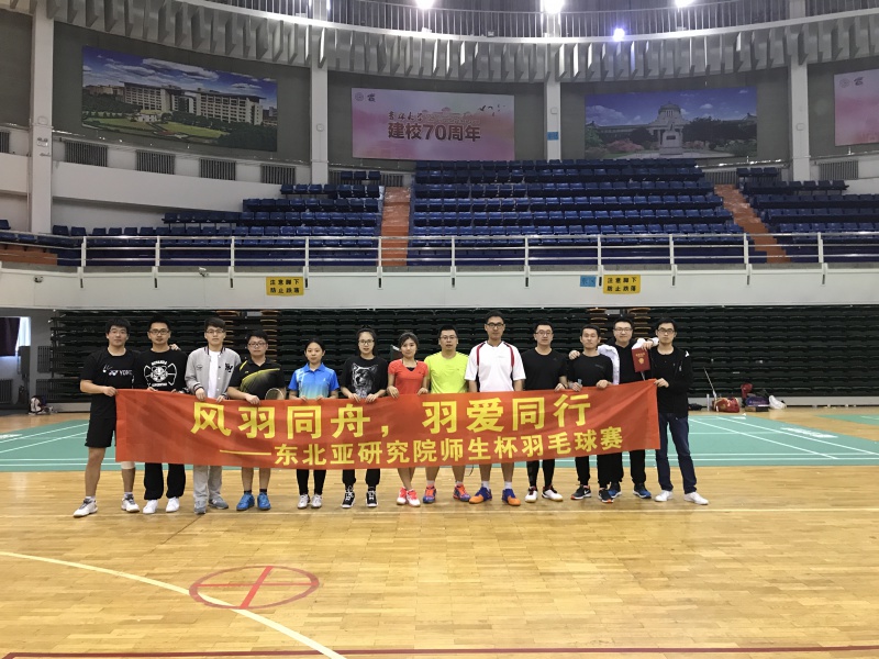 东北亚研究院研究生会组织本院师生在校体育馆举行了羽毛球比赛。