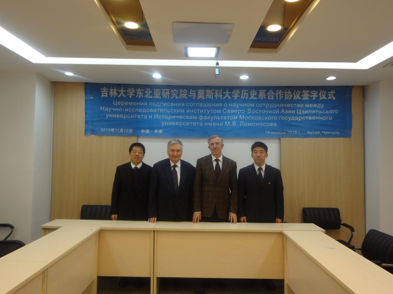 2002年至今,莫斯科国立大学历史系主任卡尔波夫院士、历史系副主任鲍罗德金教授、米洛夫院士等人多次来我校讲学。东北亚研究院先后翻译发表了莫斯科国立大学历史系米洛夫院士、鲍罗德金教授、克罗曼教授、加尔斯科娃教授、索罗基娜博士等学者的论文10篇,为莫斯科国立大学历史系学者的著作撰写并发表书评3篇,访谈录2篇。此次,东北亚研究院与莫斯科大学历史签署合作协议,标志着双方制度化合作进入新阶段。