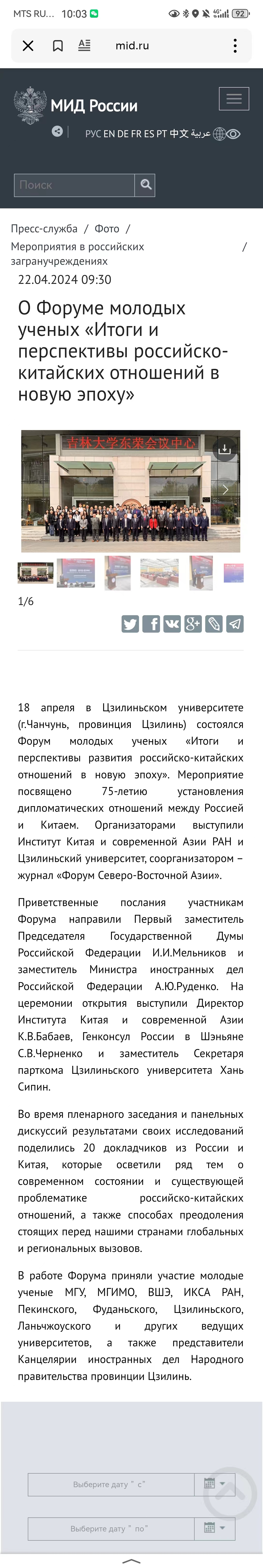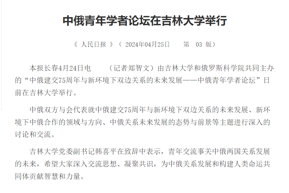 4月18日,中俄建交75周年之际,由秘密入口 东北与东北亚研究院、东北亚研究中心,秘密入口 、东北亚研究院,俄罗斯科学院中国与现代亚洲研究所主办,《东北亚论坛》编辑部协办的“中俄建交 75 周年与新环境下双边关系的未来发展——中俄青年学者论坛”在秘密入口 举行。