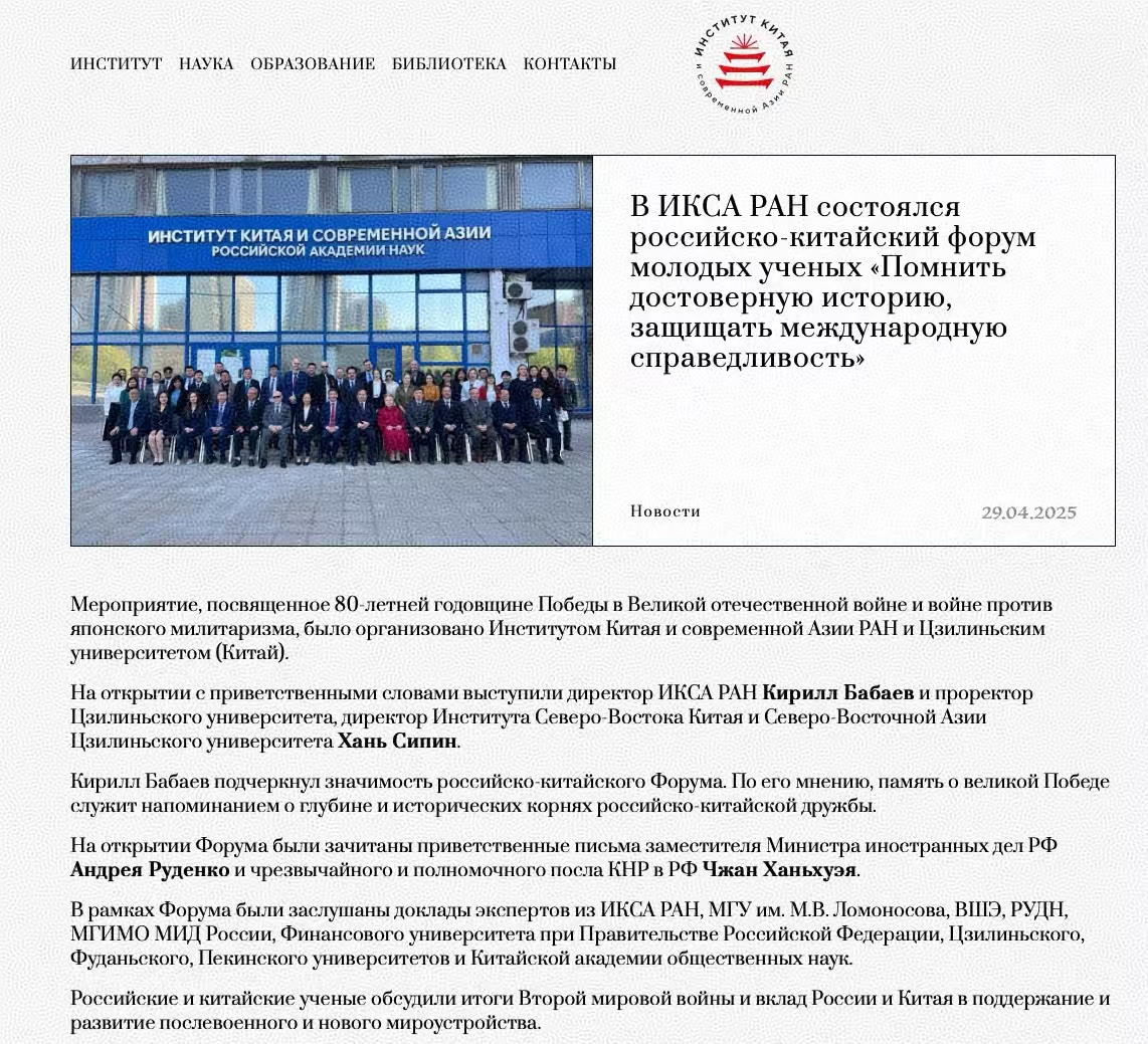 2025年4月25日,由俄罗斯科学院中国与现代亚洲研究所、秘密入口
