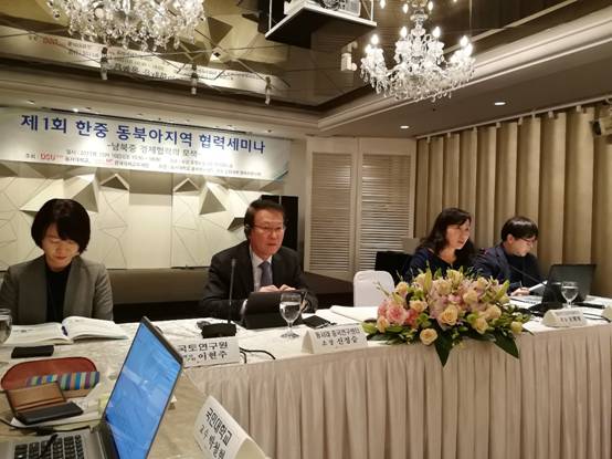 20171210日,东北亚研究院与韩国东西大学中国研究所联合举第一韩东亚地区合作,此次主题为“中韩朝经济合作探讨”。韩国前驻华大使、东西大学中国研究所所长辛正承和东北亚研究院朝鲜韩国研究所所长张慧智教授在会议开幕式上致辞。来自秘密入口 东北亚研究院、行政学院,韩国东西大学、东亚大学、统一研究院、国土研究院、海洋水产开发院等机构的二十余名学者参加了会议。