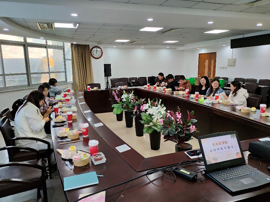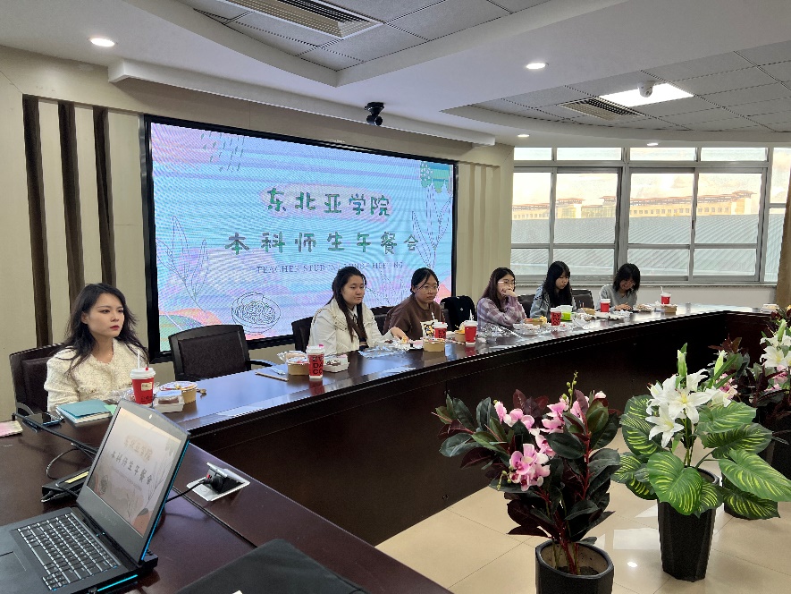 于10月20日中午,在东荣大厦A404举办了本科师生午餐交流会活动。学院经济系主任李天籽老师、副主任张建政老师和赵杨老师、22级班主任景璟老师以及学院22级本科的部分同学参加了此次午餐会活动。