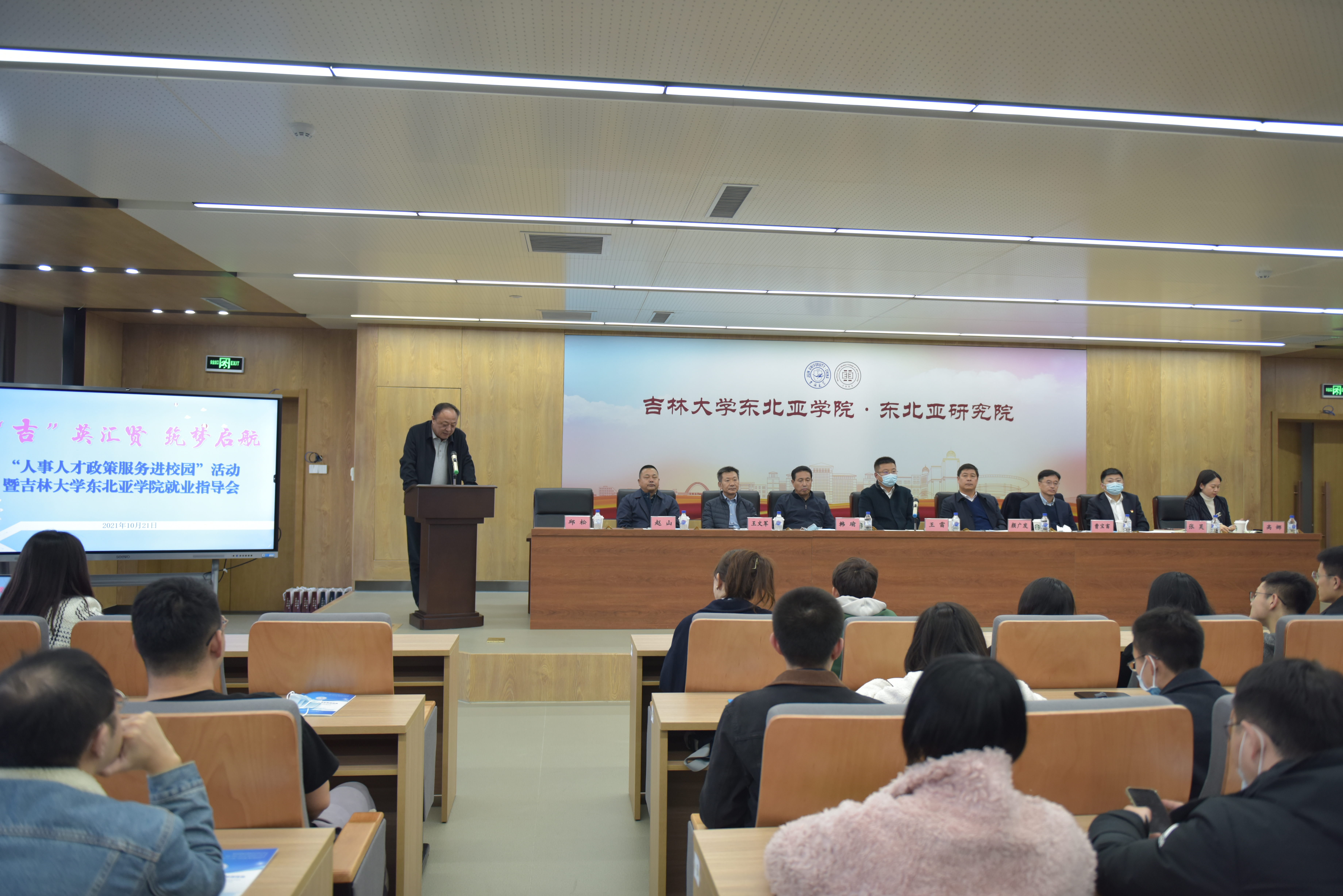 于10月21日下午,邀请吉林省委组织部、省人社厅的相关处室领导在东荣大厦B215教室,开展了“人事人才政策服务进校园”宣讲活动。活动由学院党委书记邱松老师主持,100余名毕业生参加。