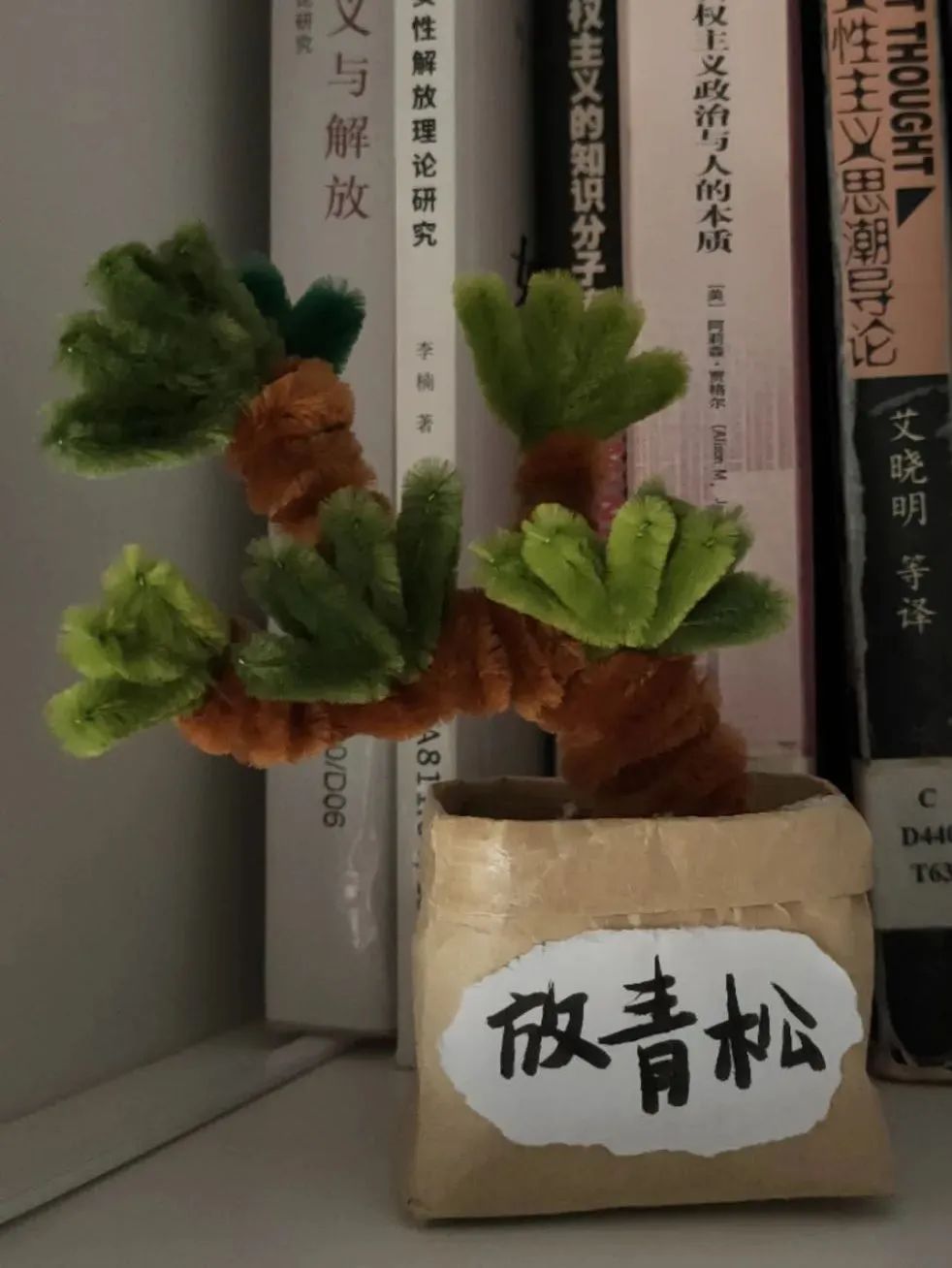 活动组织者为同学们准备了材质各异、色彩多元的扭扭棒,同时为了充分满足同学们的自由创作需求,还采购了包装纸、花架、小眼睛和钻石贴纸等材料。制作过程中,同学们各取所需、专心致志地创作属于自己独一无二的扭扭棒作品。有的同学由于制作得较好,被大家自发地当成了“小老师”,同学们围坐在一起交流讨论、互相帮助,以自己当下的状态和情绪为依托,伴随着平和放松的轻音乐,共同“扭出”自己想象中的作品。